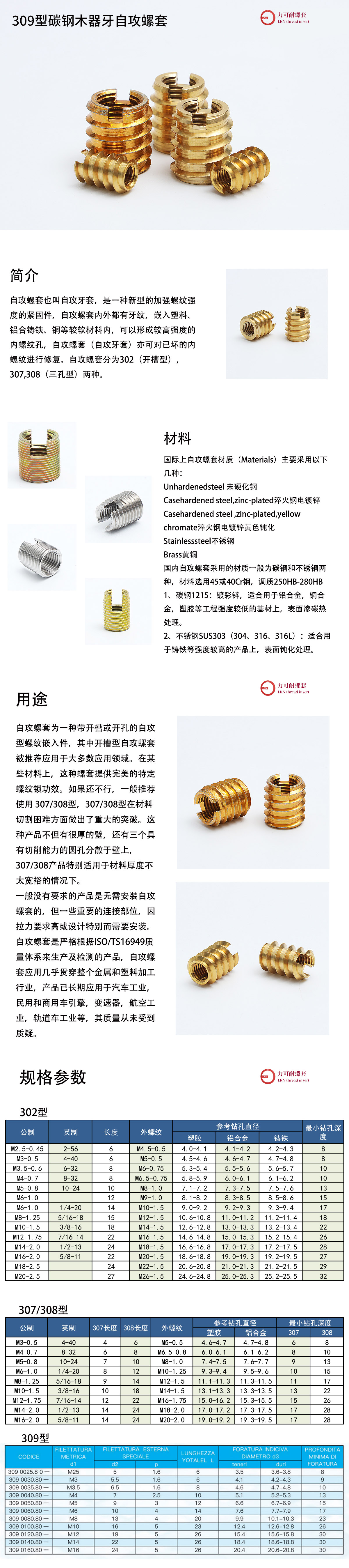 品名:309型碳鋼木器牙自攻螺套